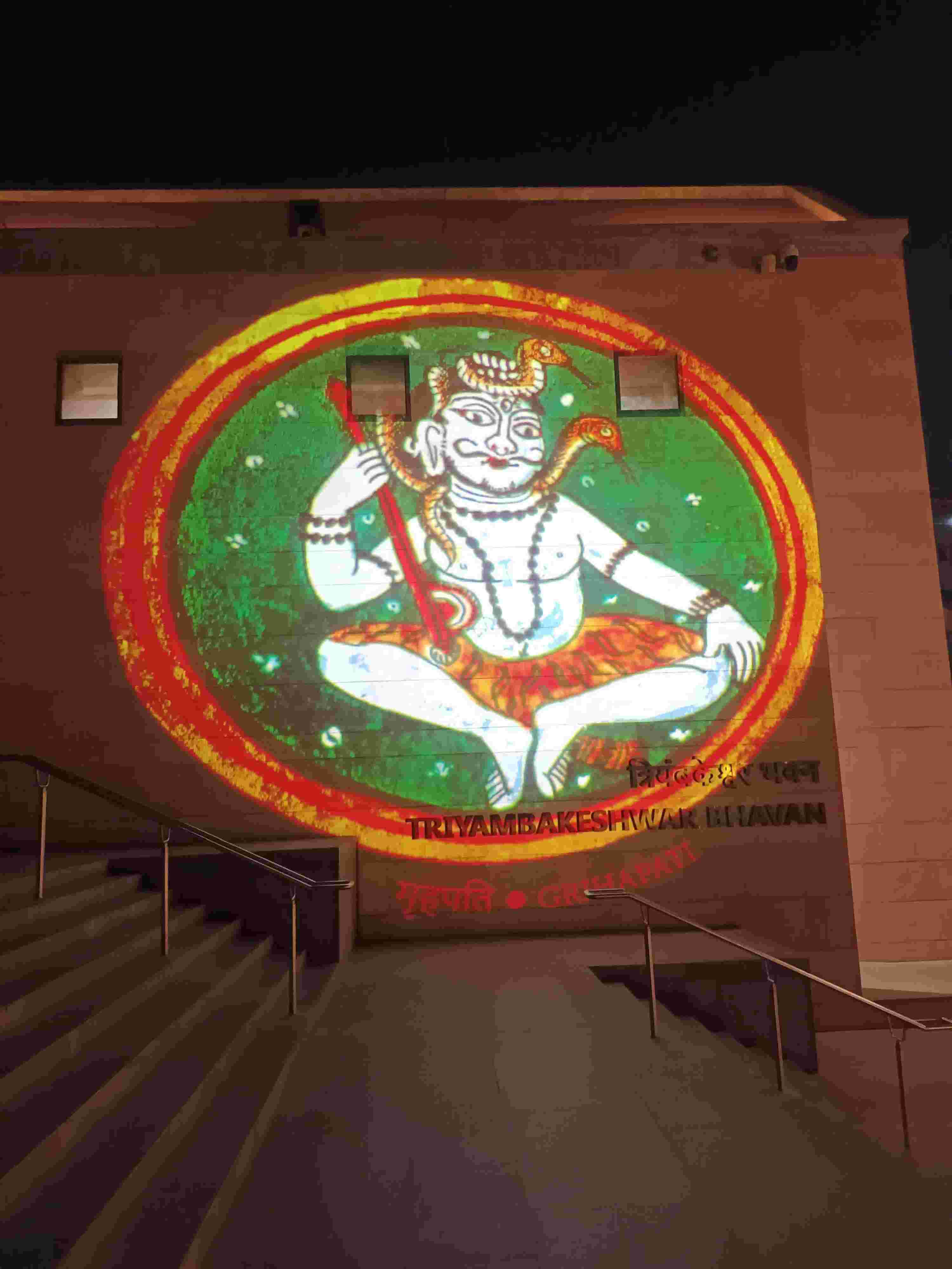 Light creation of Shiva at Kashi Vishwanath corridor at night, Varanasi, Uttar Pradesh, India