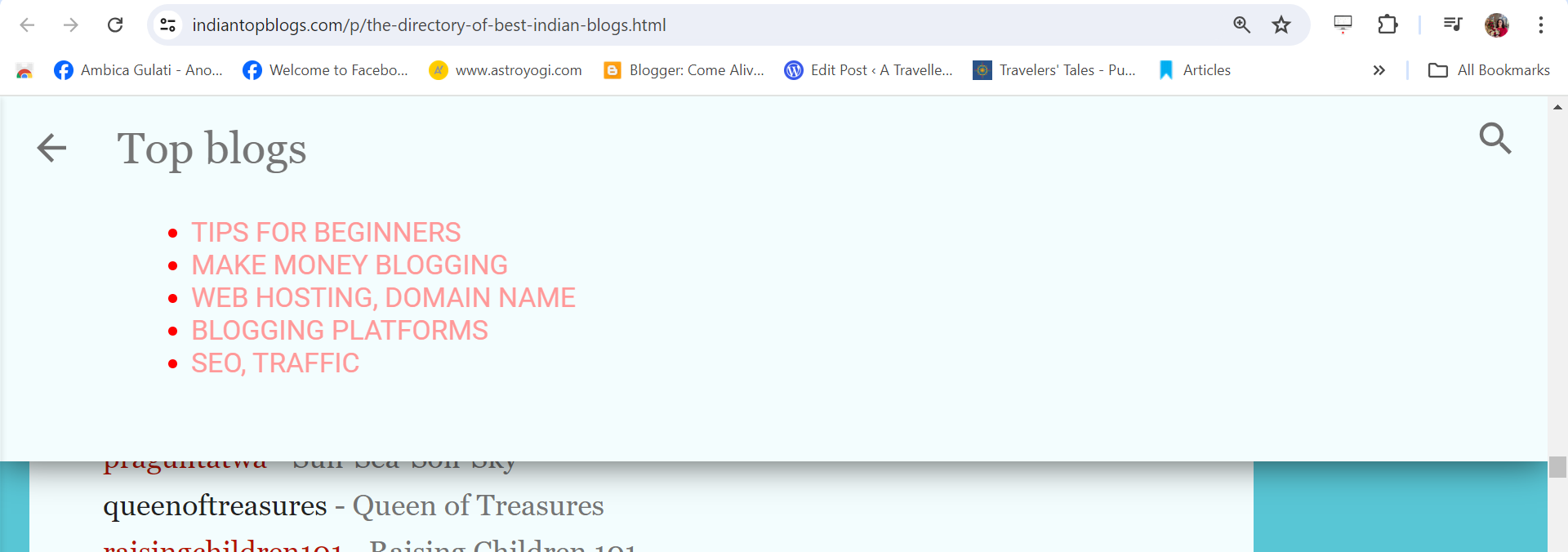 7. Listed in the 14th edition of the Directory of Best Indian Blogs in English on Top Blogs.
